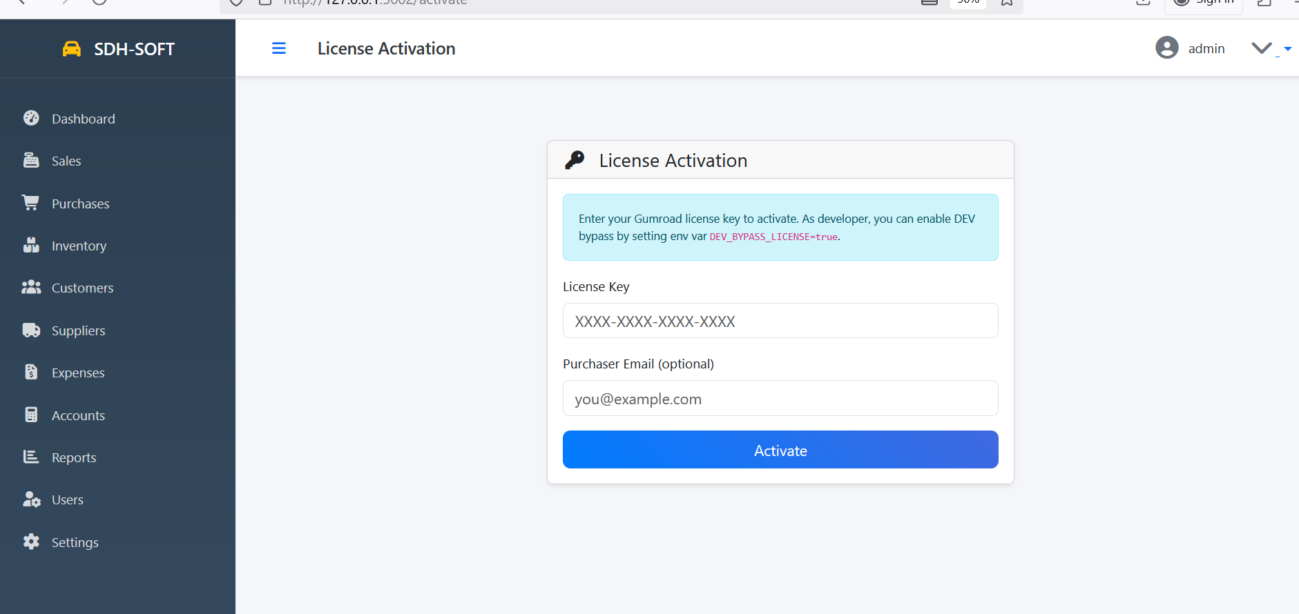 - Enter your unique Gumroad license key.