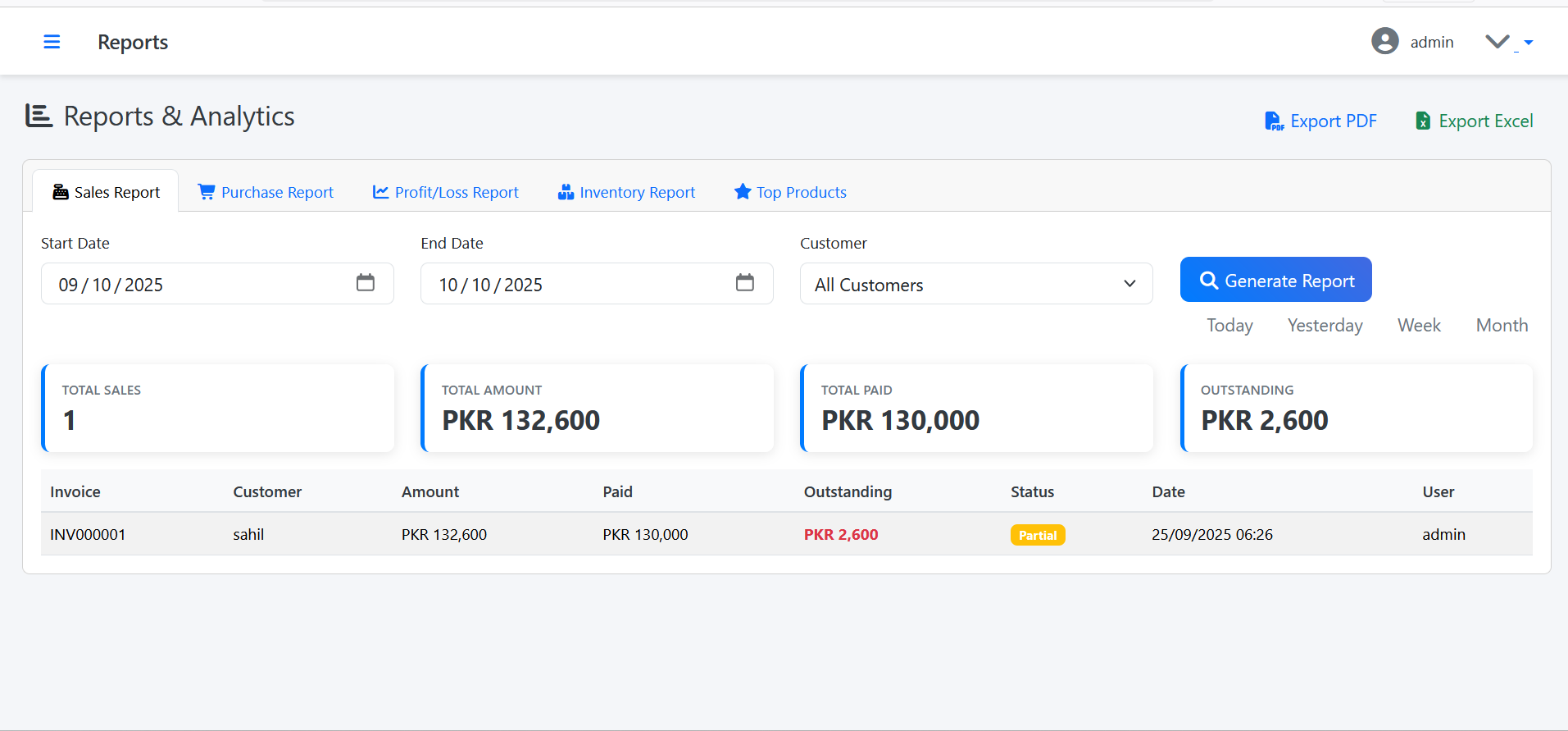See real-time totals of sales, expenses, profit, and customer count β everything in one place.
